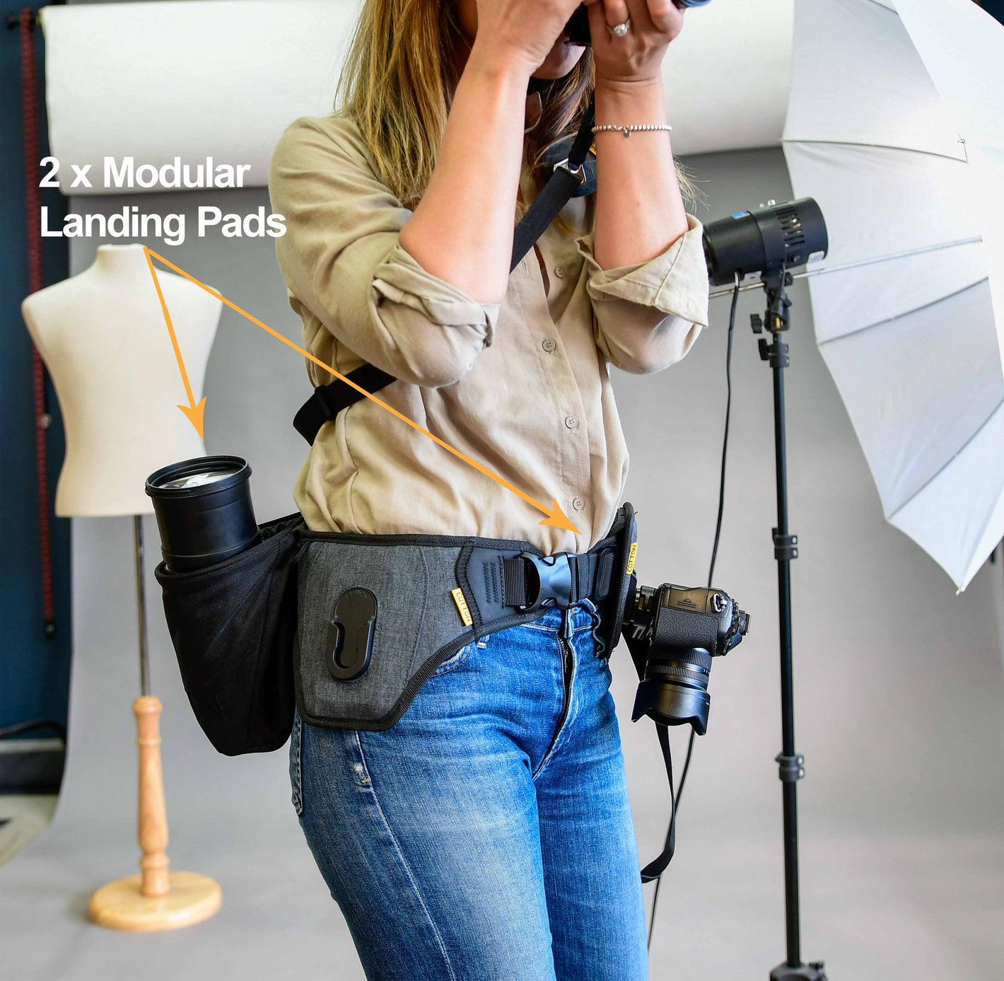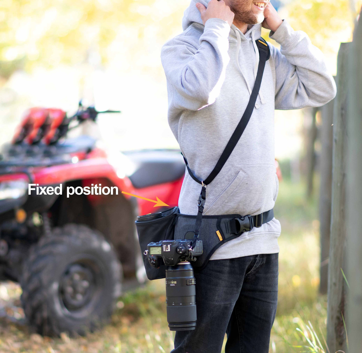 Le système commence par la SlingBelt. Cette ceinture de conception ergonomique repose confortablement et répartit le poids de votre équipement sur vos hanches. Dites adieu à la fatigue du haut du corps et éliminez les douleurs au cou et aux épaules.