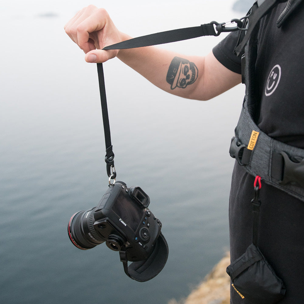 Copia de respaldo de alto impacto con nomisión de seguridad. Proporciona un nivel adicional de seguridad al usar el arnés. La redundancia agregada le permite estar seguro de que su cámara siempre es segura.