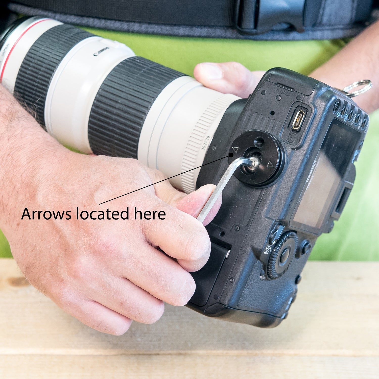 4. Ahora es el momento de conectar el cubo a su cámara [usando la tecla Allen proporcionada]. Asegúrese de alinear las flechas en el centro en la misma dirección de la lente.