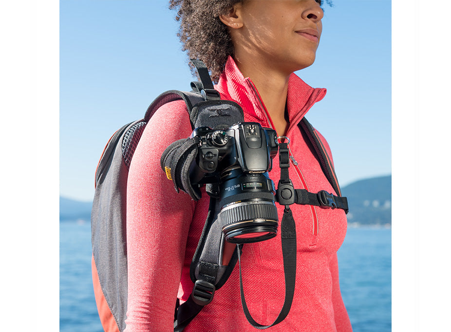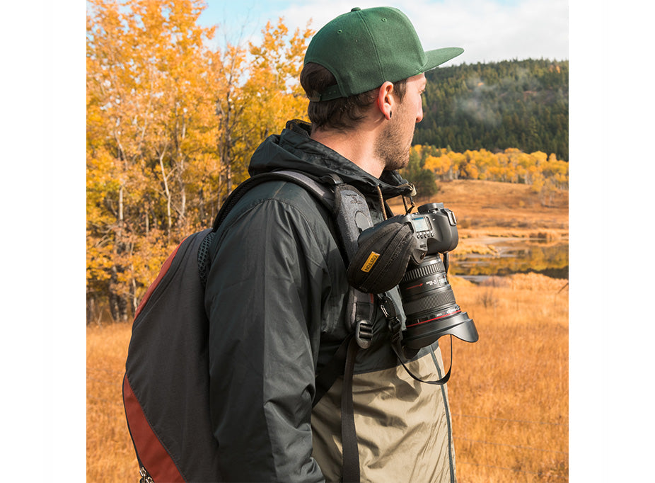 Peut transporter n'importe quel appareil photo de taille Mais pour la plupart de la stabilité et du confort avec une poignée de batterie ou un téléobjectif, nous recommandons le Harnais G3