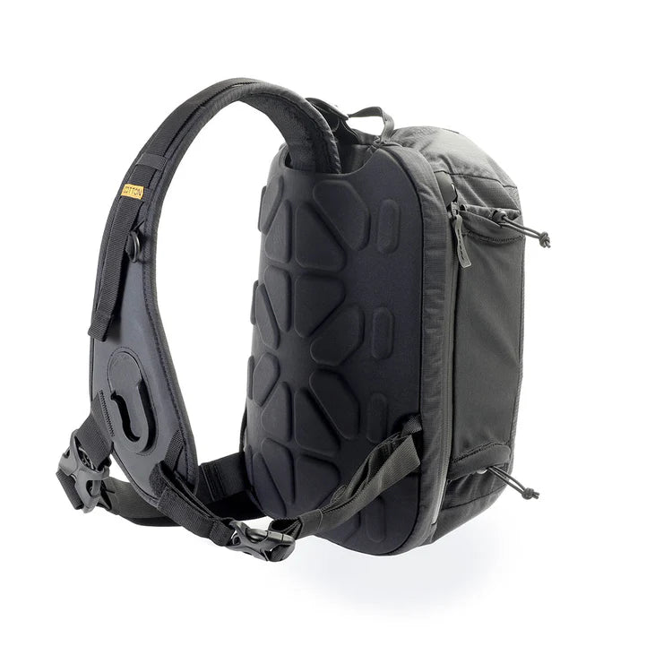 Le Hyker est un sac d'élingue 12L conçu pour le confort et l'ergonomie. Il présente notre récepteur breveté Twist & Lock sur le bandoulière, vous permettant de transporter en toute sécurité votre optique (comme des jumelles, un contrôleur de drone ou un appareil photo) à l'extérieur du sac pour un accès rapide et facile.
